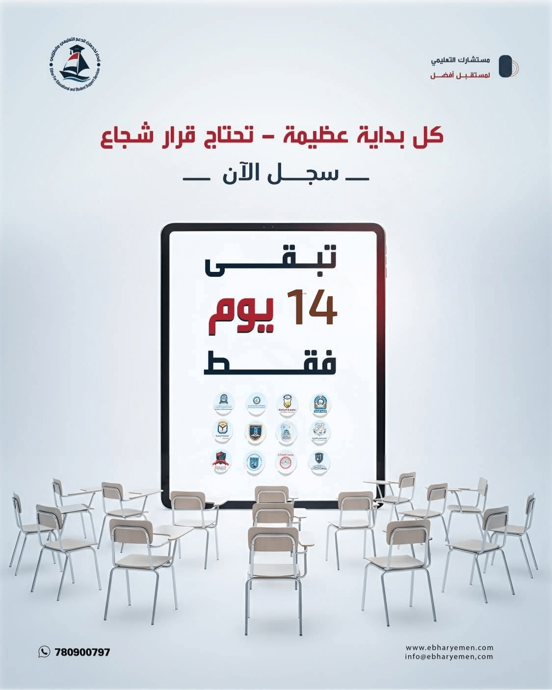 انسَ تعب المشاوير وضياع الوقت بالبحث عن المعلومات..كل شيء صار من جوالك وبالمجــــان 🤩 مع إبحار:* تحصل على المعلومات تختار تخصصك وانت مرتاح.* تسجّل أونلاين بسهولة وتحصل على تخفيض حصري فوق كل التخفيضات! 🚀 اختصرها.. سجل أونلاين وخلّك أذكى! 📑 رابط التسجيل:https://ebharyemen.com/registrations 📲 تحتاج مساعدة؟ تواصل بناء واتس أب او اتصال:7780900797 #إبحار – فرصتك تبدأ…المزيد