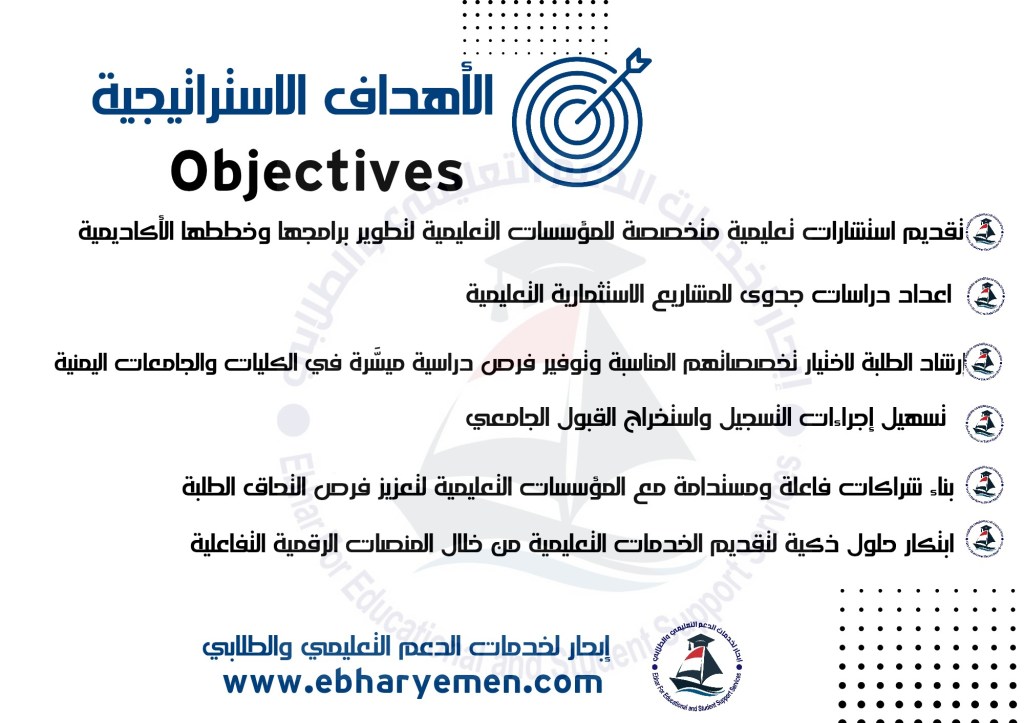 - إرشاد الطلبة لاختيار تخصصاتهم المناسبة وتوفير فرص دراسية ميسَّرة في الكليات والجامعات اليمنية.